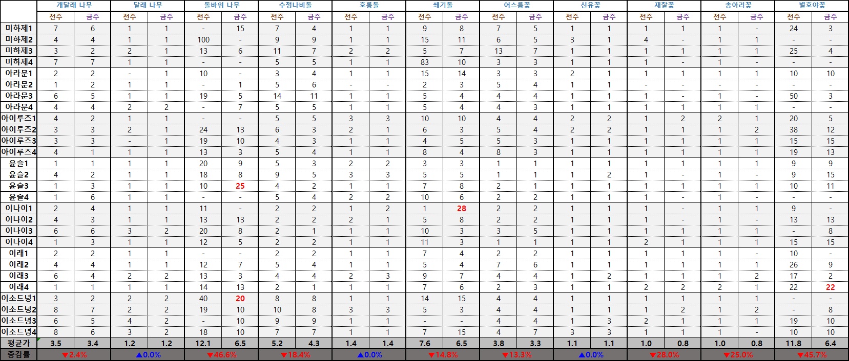 ※ 시세표는 실시간 최저가를 기준으로 작성됐으며 '평균가'는 최대 및 최소 가격을 제외하고 계산된 수치입니다.