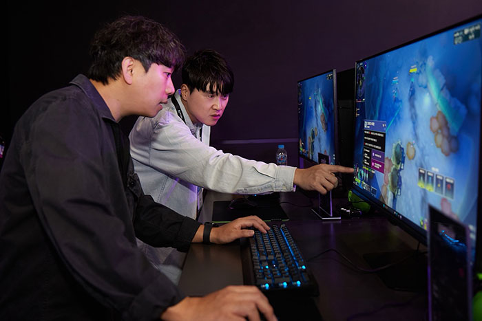 이후 윤명진 대표는 ‘슈퍼바이브’, 조 텅 대표와 제시카 남 PD는 ‘카잔’ 부스에 각각 방문해 게임을 직접 시연하며 이색적인 모습을 연출했다. 윤명진 대표는 “슈퍼바이브’에 대해 ‘고정된 틀에 얽매이지 않고 다양한 전략을 활용하며 즐길 수 있는 빠른 템포의 전투가 인상적이었다”고 소감을 밝혔다. 조 텅 대표와 제시카 남 PD는 ‘카잔’을 플레이한 이후 “수려한 아트 스타일이 만족스러웠으며, 전반적인 컨트롤과 액션성도 매우 완성도 높게 구현된 것 같다”고 말했다.