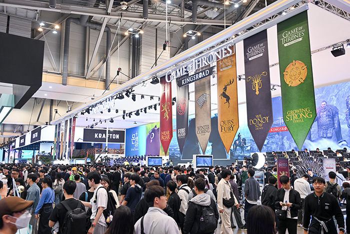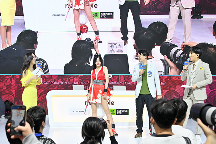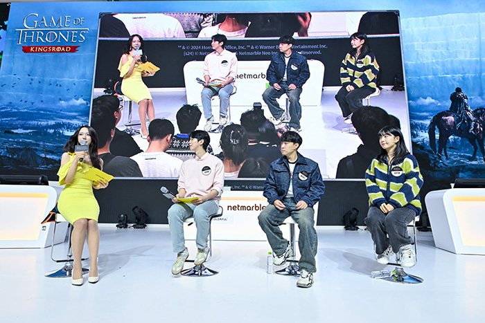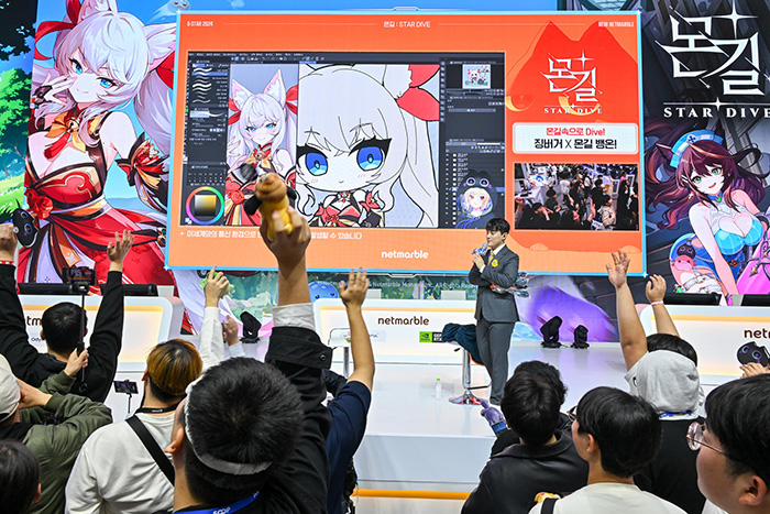 넷마블은 지스타 2024에서 '왕좌의 게임: 킹스로드'와 '몬길: STAR DIVE'을 출품작으로 선보이며, 무대에서 다양한 이벤트를 진행했다.