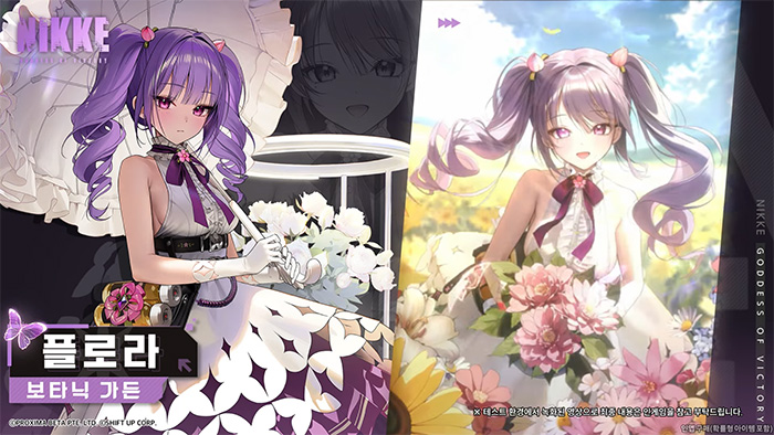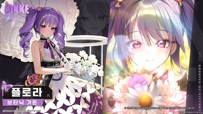 보타닉 가든 스쿼드 멤버 중에서 첫 선을 보이는 '플로라'는 모든 사람이 꽃으로 보이기에 모든 것을 꽃에 비유해서 이야기하는 니케로 소개됐습니다. 꽃과 식물을 사랑하고 정성껏 관리하는 니케답게 기품있고 우아한 옷과 말투가 특징입니다.