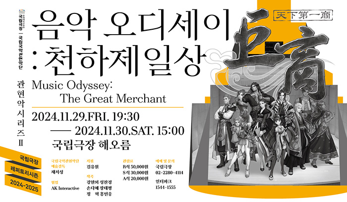 에이케이인터렉티브와 국립국악관현악단이 협력하여 진행되는 ‘음악 오디세이:천하제일상’은 ‘천하제일상 거상’ 서비스 이후 처음으로 열리는 국악 공연으로 ‘천하제일상 거상’의 수준 높은 다양한 OST를 능력 있는 작곡가들의 편곡 버전으로 감상할 수 있다.