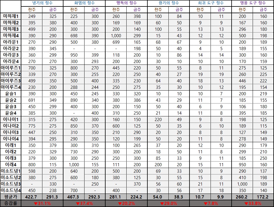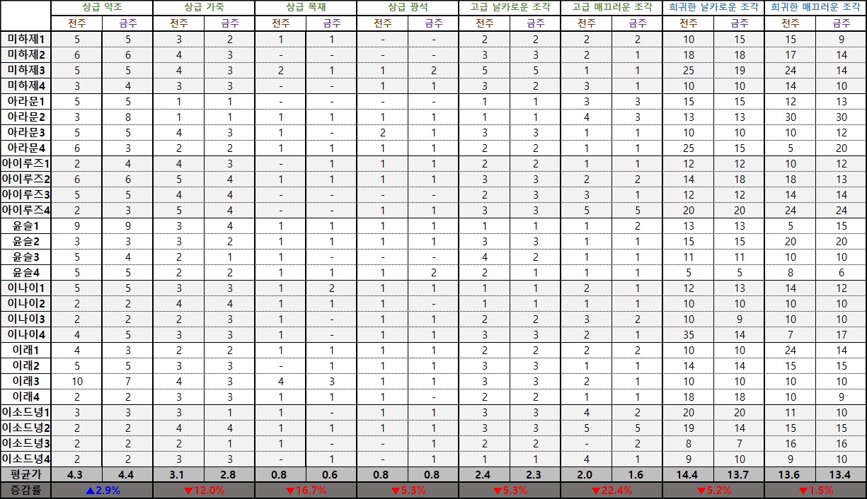 ※ 실시간 최저가가 0.5 다이아 미만일 경우 '-'로 표기됩니다.