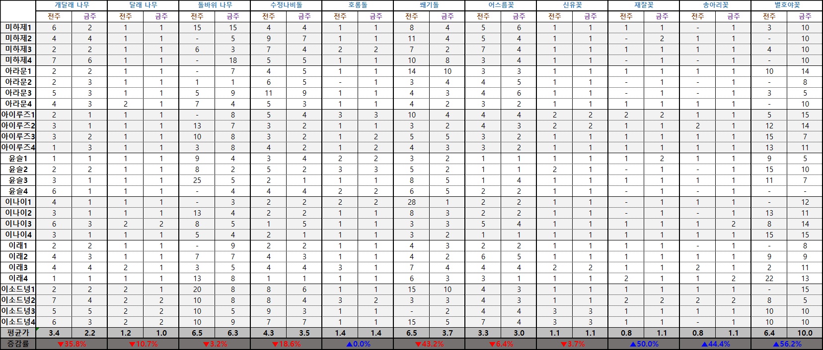 ※ 시세표는 실시간 최저가를 기준으로 작성됐으며 '평균가'는 최대 및 최소 가격을 제외하고 계산된 수치입니다.