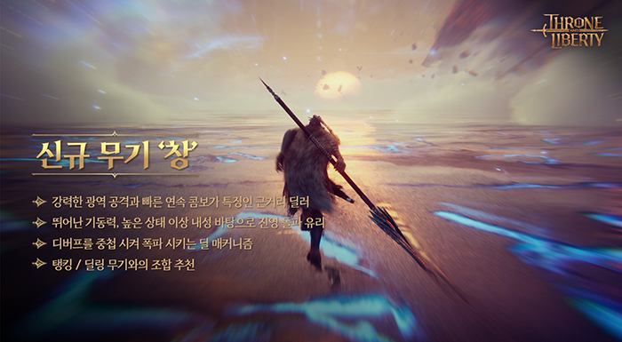 엔씨(NC)는 12월 4일 신규 무기 ‘창’과 새로운 스탯 ‘불굴’을 추가한다. ‘창’은 강력한 근거리 딜러 역할을 하는 무기다. 광역 공격과 빠른 연속 콤보 공격이 가능해, 전장의 선두에서 상대 진영을 파괴하는 역할을 수행한다. ‘창’ 고유의 디버프인 ‘파열’을 활용하면 연계 스킬을 사용하거나 폭파시켜 피해를 극대화할 수 있다. TL 무기 중 최초로 파티원들의 ‘강타 적중’을 높이는 버프도 보유한다.