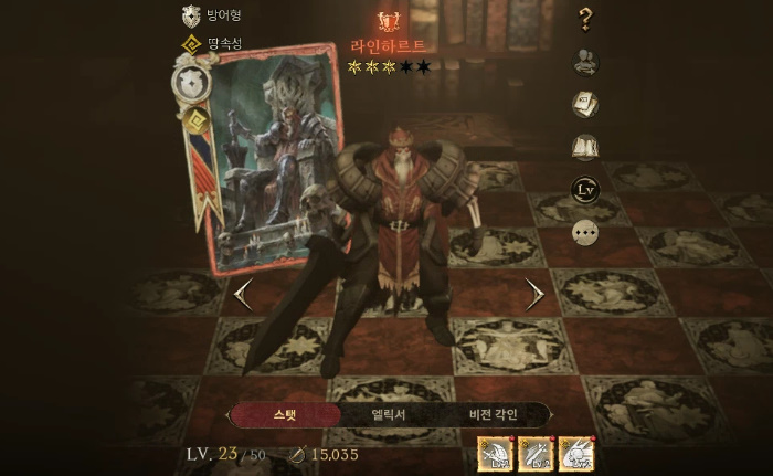 전설 등급 캐릭터인 '커츠'를 입수하기 전까지는 방어형 캐릭터를 서로 조합해 생존력을 높이는 것이 좋다. 앞서 소개한 바와 같이 '라인하르트'는 방어형 아군 캐릭터에게 피해 면역 효과를 제공하는데, 이를 활용해 라인하르트/ 기사/ 소드 마스터를 함께 조합하면 된다.