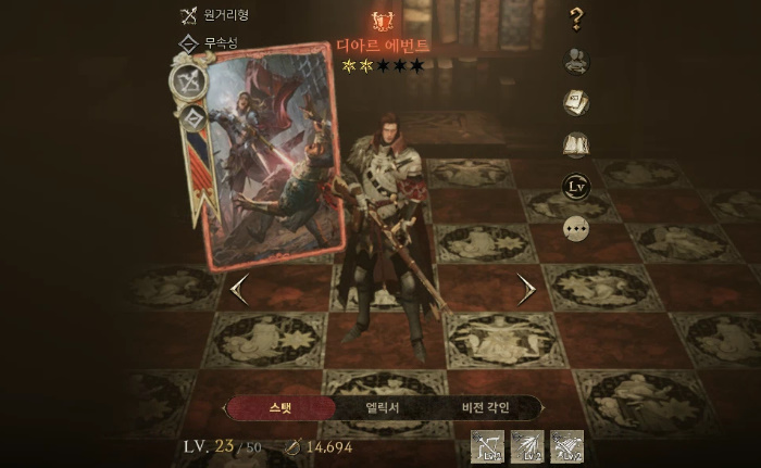 디아르 에번트는 전형적인 원거리 딜러 캐릭터다. 치명타 공격 성공 시, 적의 회피를 감소시킬 수 있으며 액티브 스킬 '래피드 샷'의 경우 적에게 막대한 피해를 주고 강화 효과를 제거하는 것이 가능하다.