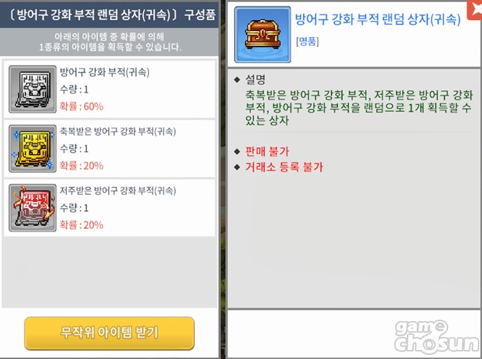 상자에서 얻을 수 있는 축복 받은 강화 부적의 등장 확률은 20%인 점도 기억할 필요가 있겠습니다.