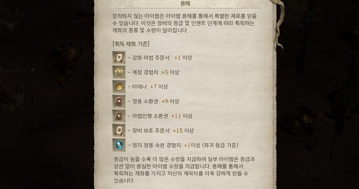 장비 강화 시 필요한 장비 강화 주문서는 결코 부족하지 않게 제공되기 때문에 아낄 필요가 없다.