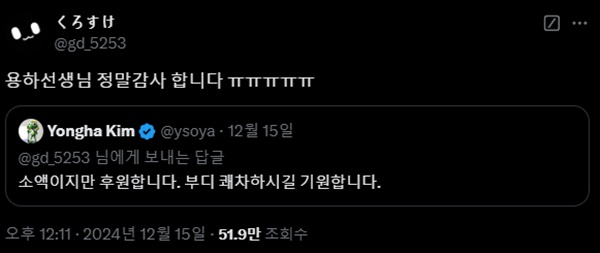 게임사와 선생님들을 비롯한 수많은 게이머의 선한 영향력이 모인 결과, 12월 16일 오전 기준으로 피해자를 위해 2억 6천만원의 기부금이 모인 것이 확인됐으며 관계자는 빠르면 12월 19일에 피해자가 첫 피부이식 수술에 들어갈 수 있을 것이라고 전했다.