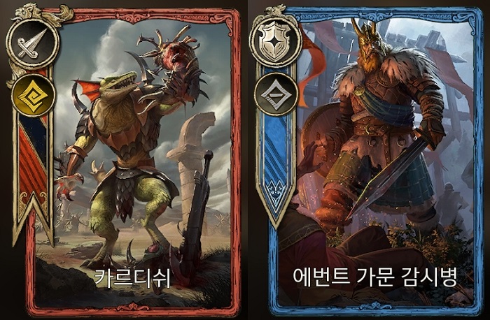 영웅 등급의 '카르디쉬'는 치명타 공격 성공 및 액티브 스킬 '리자드블로우'를 통해 시전자의 명중 스탯과 치명타 확률을 증가시키는 등 자신 강화형 버프를 갖추고 있는 땅속성 근접 딜러 캐릭터다. 다음으로 희귀 영웅인 ;에번트 가문 감시병'은 액티브 스킬 '브레이크'를 통해 적을 도발할 수 있는 무속성 탱커 캐릭터로 출시됐다.