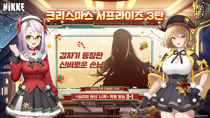 레벨인피니트가 서비스하고 시프트업이 개발한 '승리의 여신: 니케'가 22일, '그녀의 비디오테이프' 이벤트의 세 번째 비디오와 함께 '크리스마스 서프라이즈 제3탄'의 새로운 실루엣을 공개했습니다.
