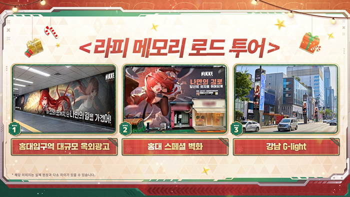 한편, ‘승리의 여신: 니케’는 지난 23일 진행된 크리스마스 특별 방송을 통해 100회 이상의 모집 기회를 무료로 제공하는 풍성한 새해 혜택을 예고해 유저들의 큰 호응을 이끌어냈으며, 라피 : 레드 후드를 만날 수 있는 대규모 옥외광고와 스페셜 벽화 등 ‘라피 메모리 로드 투어’, 오는 2월 GS25와의 콜라보레이션 소식 등을 공개해 기대감을 증폭시켰다.