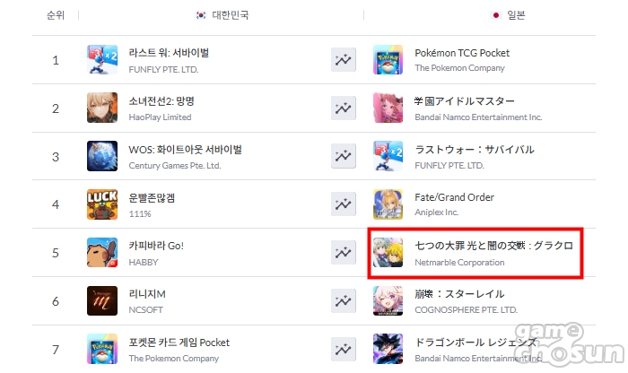 넷마블의 캐릭터 수집형 모바일 게임 '일곱 개의 대죄: 그랜드 크로스'가 12월 27일 일본 앱스토어 매출 5위를 기록했다.