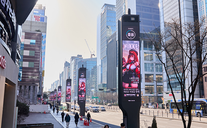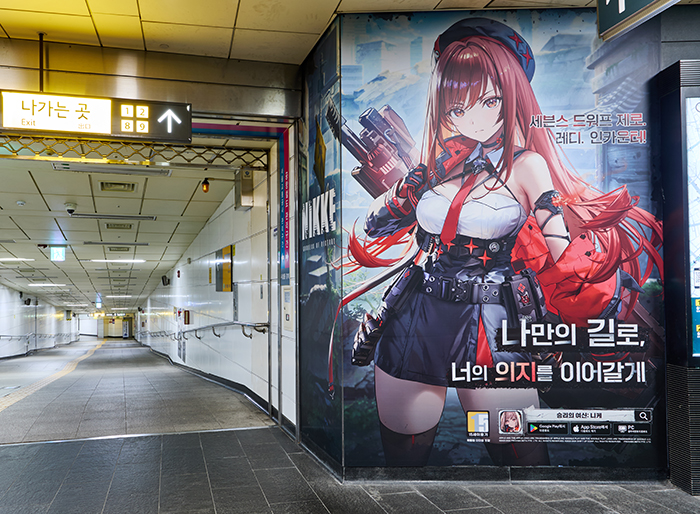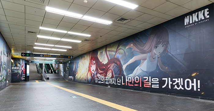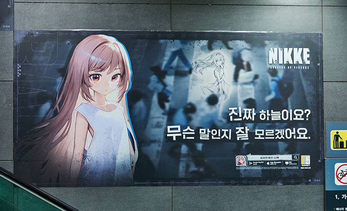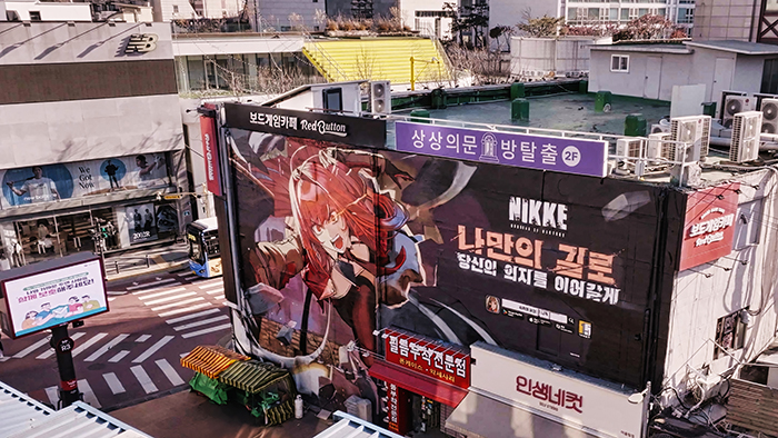레벨인피니트가 서비스하고 시프트업이 개발한 미소녀 건슈팅 액션 '승리의 여신: 니케'가 2024년의 마지막, 그리고 2025년의 시작을 장식할 첫 번째 오버스펙 니케 '라피 : 레드 후드'와 그녀의 과거 이야기를 담은 이벤트 스토리 'FOOTSTEP, WALK, RUN'를 기념하여 진행된 '라피 메모리 투어'를 위해 '홍대 로데오거리, 홍대입구역, 강남 G-LIGHT에 대규모 옥외광고를 진행 중이다.