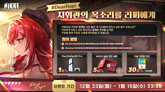 사실 #DearRapi는 지난 12월 23일부터 진행된 '지휘관의 목소리를 라피에게' 이벤트 때부터 알려진 해시태그였습니다. 라피에게 보내는 메시지를 작성해 공식 라운지나 개인 SNS에 올리는 이벤트였죠.