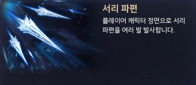 개별 투사체에 전부 공격 판정이 있기 때문에 마치 샷건처럼 인접한 거리에서 전투를 한다면 다른 스킬들보다 훨씬 높은 순간 화력을 기대해볼 수 있으며 서리 파편이 초월을 통해 혹한 파편까지 도달한다면 단검 투척과 마찬가지로 관통 속성이 붙기 때문에 범용성도 눈에 띄게 올라가게 된다.