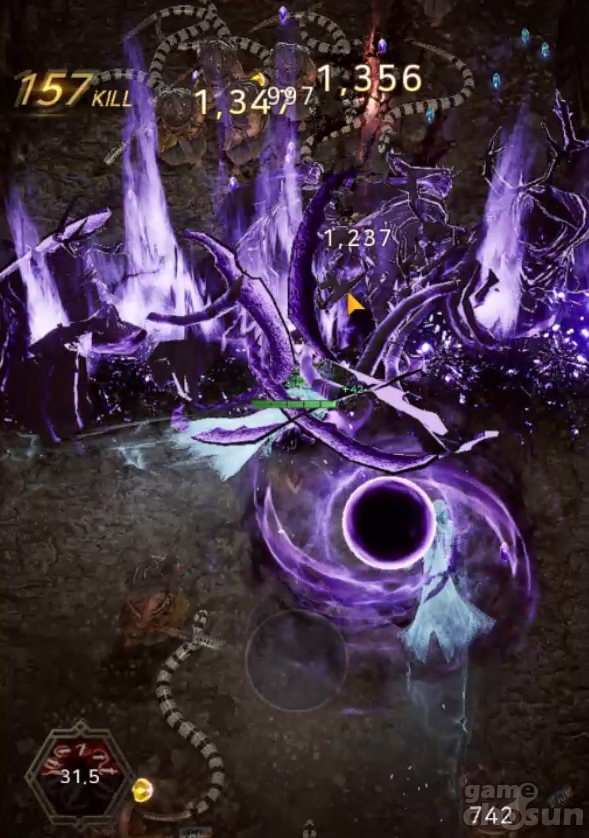 어둠의 정령은 가로축 공격이라 세로맵에 부적합하지만 장판효과 덕분에 중력 구슬과 호궁합인 공격스킬이 됐다