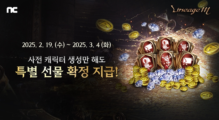 이용자는 19일 오전 10시부터 3월 4일 자정까지 신서버 ‘글루디오’에 캐릭터를 미리 생성할 수 있다. 사전 캐릭터 생성에 참여하면 ▲상급 변신/마법인형/성물 뽑기팩 ▲아데나 ▲드래곤의 다이아몬드 등으로 구성된 ‘사전 캐릭터 생성 선물’을 받을 수 있다. 해당 보상은 신서버 오픈 후 우편을 통해 지급된다.