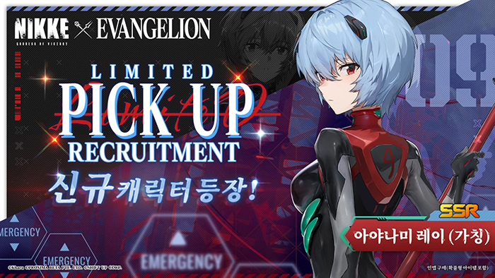 또, 이에 따라 콜라보 기간 한정 픽업으로 신규 SSR 캐릭터 '아야나미 레이(가칭)'을 선보이고, '아야나미 레이'와 '마키나미 마리 일러스트리어스' 기간 한정 재등장 이벤트를 진행한다.