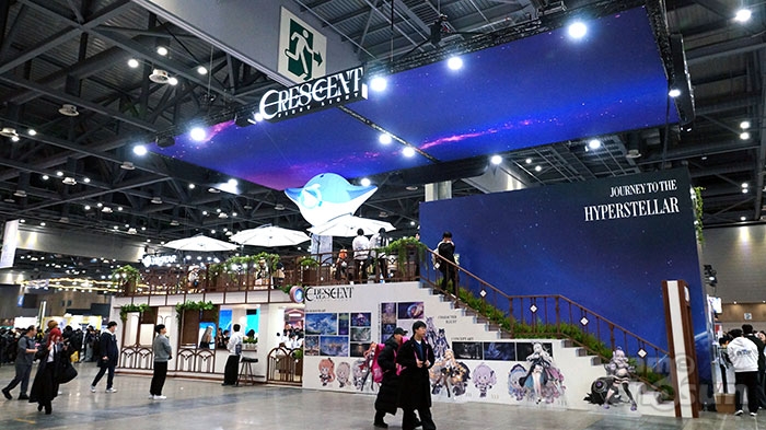 서브컬처 팬들에게 오프라인 첫 선을 보이는 '크레센트' 부스는 인게임 주인공 '파인더'가 특무대 프랜시스를 이끌고 우주를 여행한다는 설정으로 정찰선 '만타리온' 내부 카페를 모티브로 꾸며져 관람객들로 하여금 청량한 색감의 우주선 내부 카페, 하나의 휴식처에 온 듯한 느낌을 준 점이 특징이다.