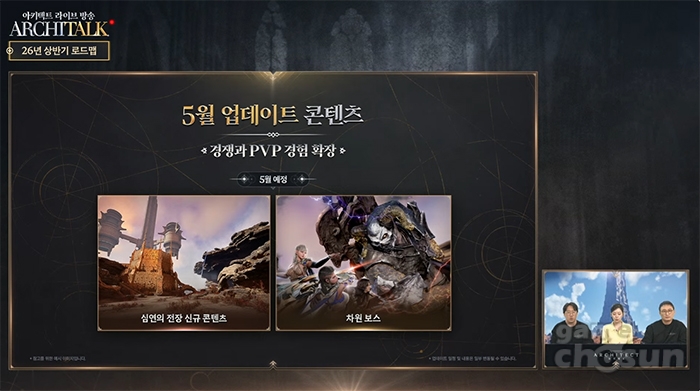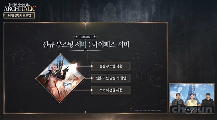 드림에이지 '아키텍트'가 2월 27일 첫 라이브 방송 '아키톡'을 진행했다. '아키텍트'는 이전부터 김민규 사업실장의 '김실장 핫라인'을 통해 소통을 이어온 바 있으나 실시간 라이브 방송은 이번이 처음이다. 이번 방송에서는 김민규 사업실장 외에도 강민철 개발 PD, 함예진 아나운서의 진행으로 Q&A 및 상반기 업데이트 로드맵을 소개하는 시간을 가졌다.