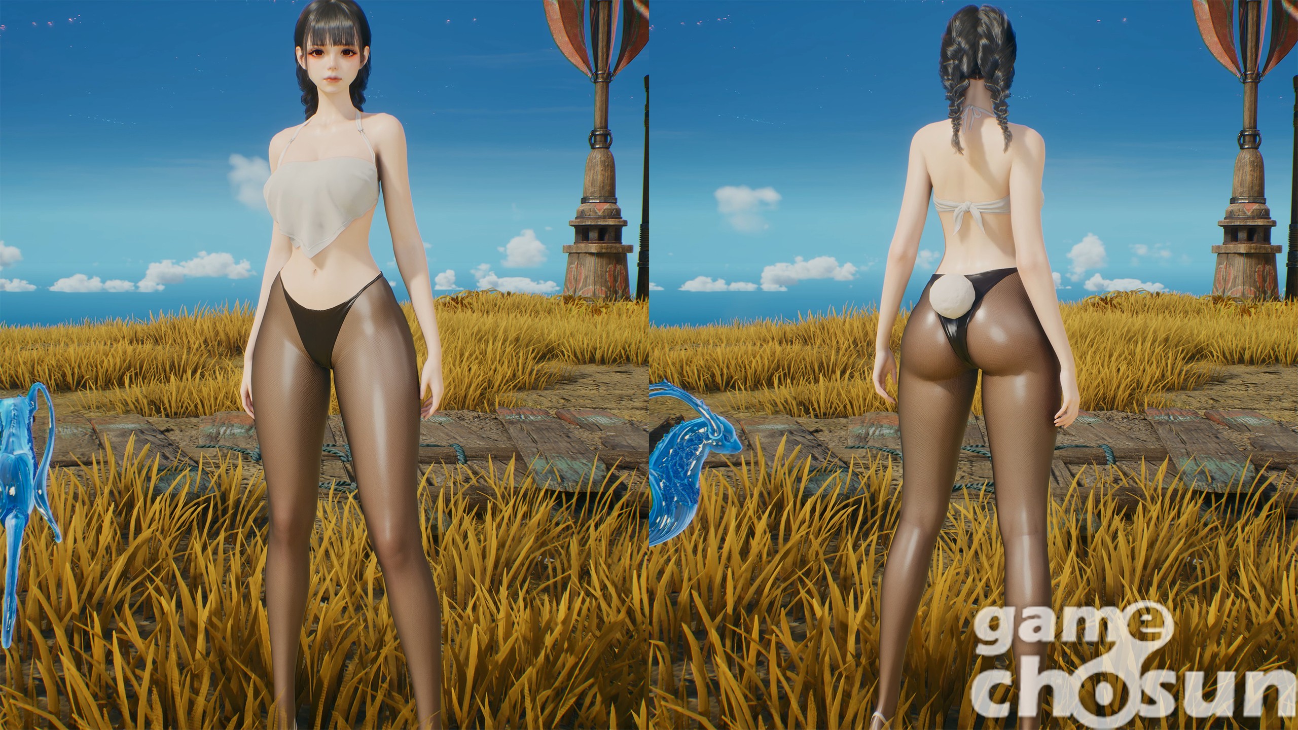 파격적인 상반신 노출로 주목받은 클래식 버니룩 = 게임조선 촬영