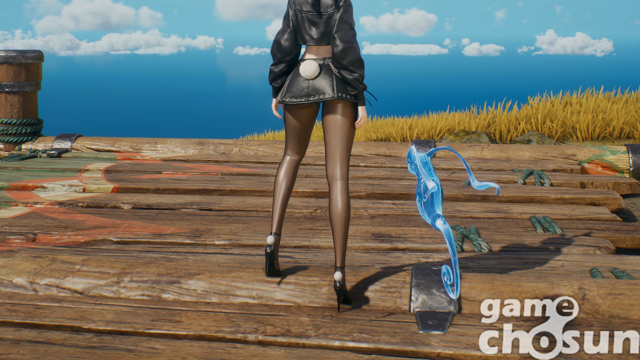 하의는 팬티 스타킹에 토끼 꼬리를 단 의상이다. 보기 드문 스타킹 의상인데다 섬세한 질감 덕분에 섹시한 의상에 잘 어울린다. 단, 토끼 꼬리는 어떻게 해도 숨길 수 없는 것이 아쉬운 부분.