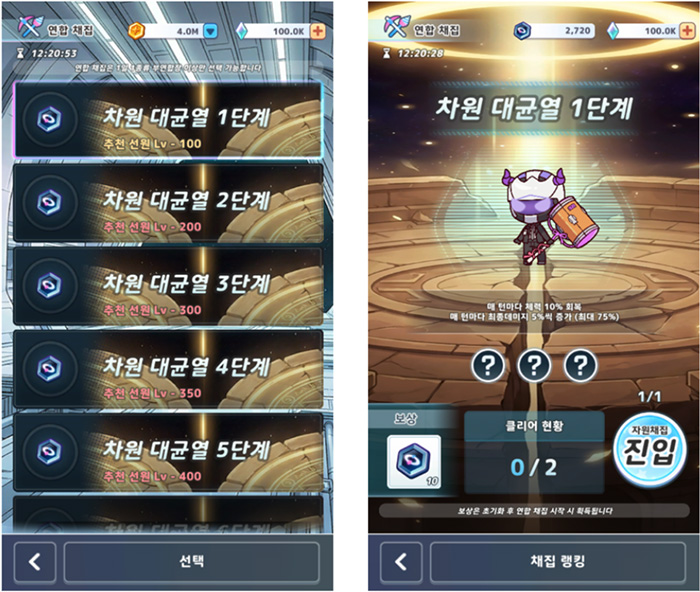 새롭게 도입된 '연합 채집'은 연합원들이 힘을 합쳐 보상을 얻는 일일 파밍 콘텐츠입니다. 연합장이나 부연합장이 매일 공략할 채집 전투를 지정하면, 다음 날 자정 전까지 모든 연합원이 전투에 참여할 수 있습니다. 보상은 클리어 기본 보상에 전투에서 승리한 총 연합원 수를 곱하여 산정되며, 매일 자정 이후 결산과 함께 재시작 시점에 지급됩니다.