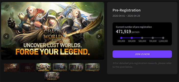 [자료제공 = 넥써쓰] 넥써쓰(대표 장현국)와 밸로프(대표 신재명)가 공동 퍼블리싱하는 모바일 MMORPG ‘카오스W’의 사전등록 수가 47만을 돌파했다.