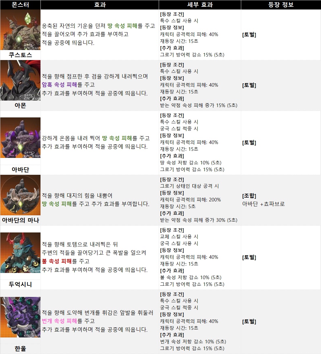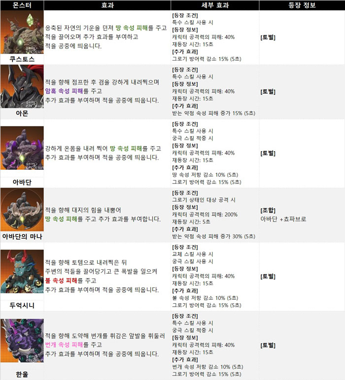 단, 이각 및 빙의된 산해와 같은 인간형 보스 몬스터는 포획이 불가능하기에 별도로 링크 체인이 존재하지 않습니다.