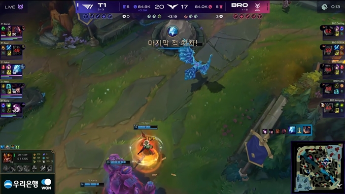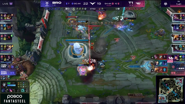 결국 43분 교전에서 오너 하나만 내주는 선에서 T1이 5:1 교환으로 대승을 거뒀고 그대로 넥서스를 파괴하며 2:0 스윕승으로 T1 홈그라운드 1일차를 승리로 마쳤다.