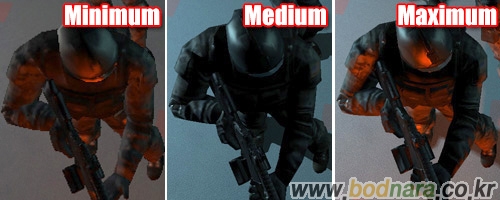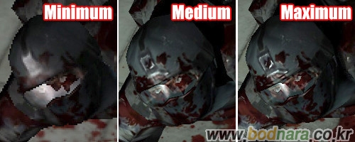 ¿É¼Çº° °ÔÀÓ È¸éÀ» ºñ±³ÇÏ¸é ±×¸²ÀÚÀÇ ºÎµå·¯¿î Á¤µµ³ª ij¸¯ÅÍ, ¹Ù´ÚÀÇ ¼¼¹ÐÇÑ µðÅ×ÀÏÀ» Å©°Ô µûÁöÁö ¾Ê´Â´Ù¸é Medium ¿É¼Ç Á¤µµ¿¡¼µµ ÃæºÐÈ÷ °ÔÀÓÀ» Áñ±æ ¼ö ÀÖÀ» °ÍÀÌ´Ù. F.E.A.R.ÀÇ ±×·¡ÇÈ ¿É¼ÇÀº Minimum, Medium, Maximum ¿Ü¿¡ Áß°£ ´Ü°è·Î Low¿Í High ¿É¼Çµµ ÀÖÀ¸¸ç, Ç׸ñº°·Î ±×·¡ÇÈ ±â´ÉÀ» ÀÚ¼¼È÷ ¼³Á¤ÇÒ ¼ö ÀÖ¾î ¾à°£ÀÇ ½Ã°£À» µé¿© ÀÚ½ÅÀÇ ´«°ú Æò±Õ ÇÁ·¹ÀÓ¿¡ ¸Â´Â Àû´çÇÑ ¿É¼ÇÀ» ã´Â °ÍÀÌ Áß¿äÇÏ´Ù.