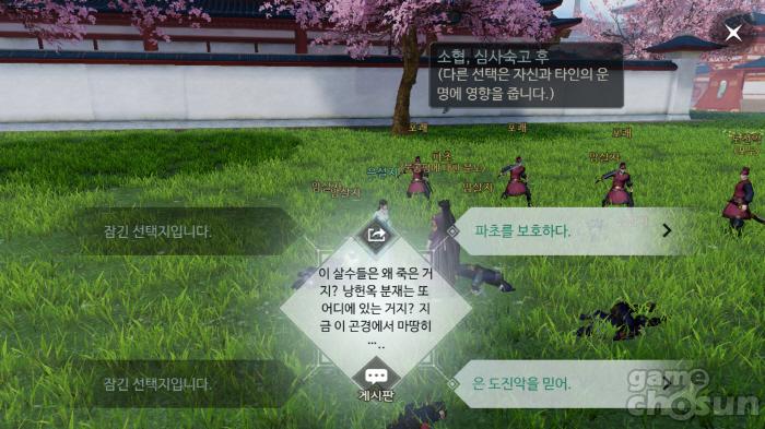 ... 이처럼 게임 내 다양한 요소를 이용하면 자신만의 무협세계를 구축할 수 있다. 검은달의 자유도는 여기서 그치지 않고 MMORPG의 세계관을 담당하는 메인 시나리오에도 적용된다. 보통 MMORPG의 메인 시나리오는 제작사가 만들어 놓은 스토리를 퀘스트나 스트립트를 통해 그대