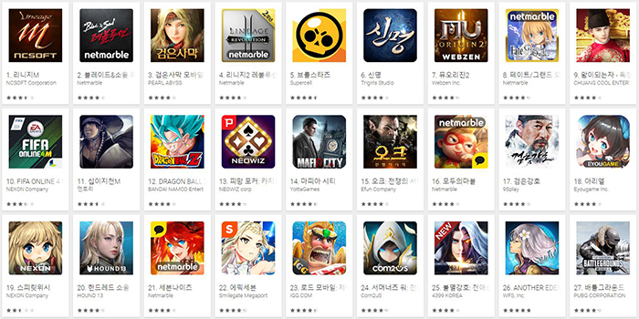 ...또 최근 영화 ‘캡틴마블’ 관련 업데이트를 진행한 ‘마블퓨처파이트’가 최고 매출 순위 26위를 기록해 상위권으로 복귀했다. ‘에픽세븐’은 한 주간 20위권의 매출 순위를 유지했지만 지난 주말 기간 동안 순위가 상승해 13위까지 올랐다. 한편, 중국 애플 앱스토어에서는 최상위권 순