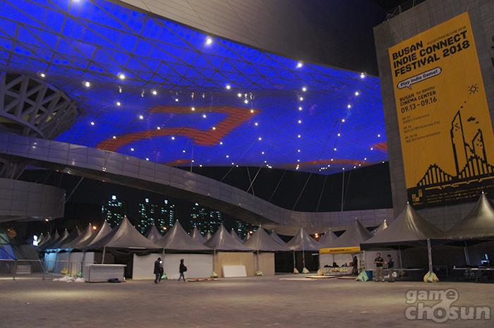 ...첫 일정인 컨퍼런스를 앞둔 12일 저녁 부산의 전장 현장은 행사의 준비가 진행 중이다. 검은색 천막을 통해 날씨의 변화에 대비했으며, 일반 관객들의 편의성을 위해 안내데스크 및 메디컬 센터가 운영될 것으로 보인다. 행사가 진행되는 영화의 전당 근처 및 센텀시티역에는 ‘BIC 20