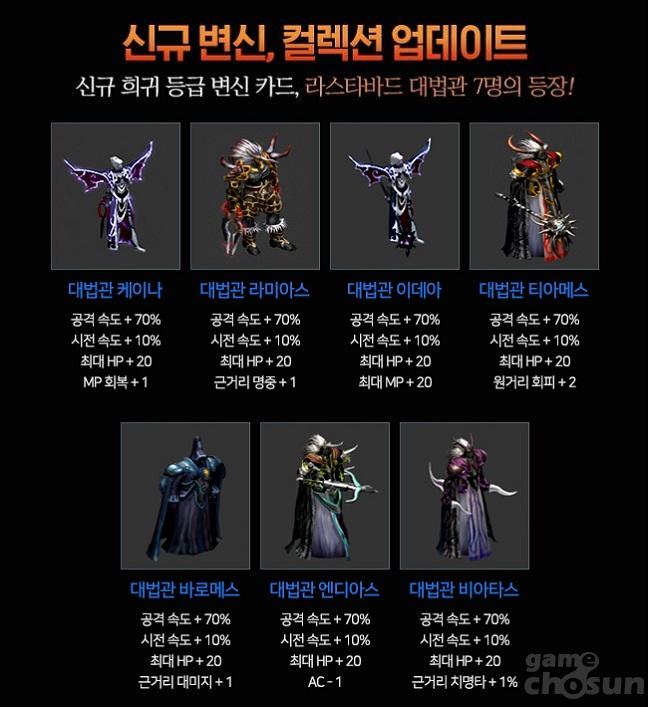... 5월 2일 정기점검 전까지 오만의탑 입장 조건이 기존 68레벨에서 '60레벨로 하향 조정'되며 던전 전층에 아인하사드 축복 소모량 감소 버프가 적용된다. 또한, 이동 주문서 없이도 3층까지 특수 던전 UI를 통해 간편하게 이동할 수 있도록 변경된다. 또한, 이벤트 기간 동