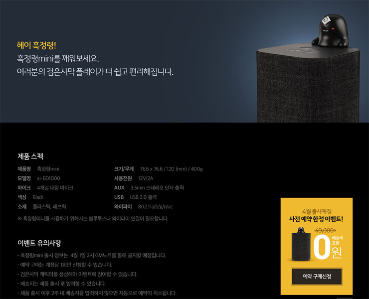 ... 설명 페이지에는 흑정령미니 연동 방법도 설명됐다. 제품을 PC USB 포트에 연결한 후 제품 설명서에 안내된 URL에 브라우저로 접속해 컨트롤러 프로그램을 설치한 뒤 게임 내 설정에서 연동 코드를 입력하면 스피커에서 안내가 나오는 방식이다. 해당 제품의