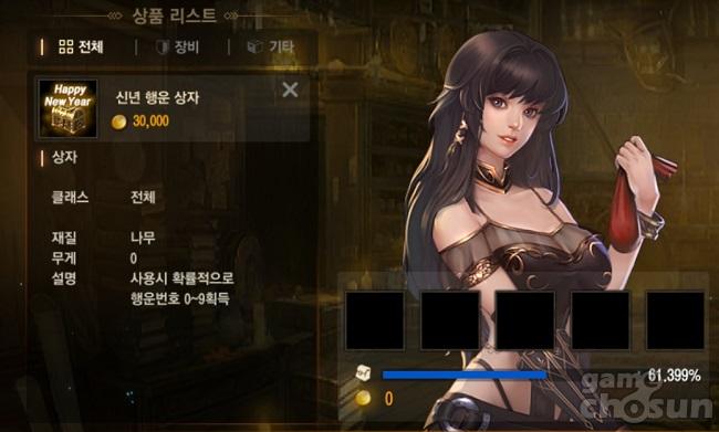 ... 상인 NPC 럭키는 기란과 오렌, 아덴, 하이네, 글루딘 마을에 위치해 있으며 3만 아데나에 하루 5개의 신년 행운 상자를 구입할 수 있다. (출처 - 게임조선 촬영) 시련 던전의 경우는 에틴의 보물상자와 탄약통 터뜨리기 등의 오브젝트 파괴 목표를 가진 항목에서 각 오브젝트를