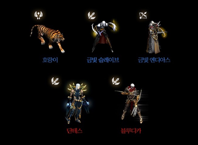 ... 희귀 등급에는 '호랑이'와 '금빛슬레이브', '금빛엔디아스'가 있으며 영웅 등급으로는 '단테스'와 '블루디카' 등 리니지에 등장하는 주요 인물로 구성돼 있다. 특히 이번 신규 변신은 다크엘프에 특화돼 있는 만큼, 빠른 공격 속도를 가지고 있으며 PVP 대미지 리덕션 및 추가 대