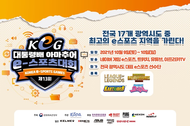 ... 특히 그동안 90여 명이 대통령배 KeG 경험을 발판삼아 프로로 데뷔했다. 올해 선정 종목은 ▲라이엇 게임즈의 리그 오브 레전드(이하 LoL) ▲크래프톤의 배틀그라운드 모바일 ▲넥슨코리아의 카트라이더 ▲한빛소프트의 오디션이며, 장애인 시범 종목은 카트라이더로 진행된다.