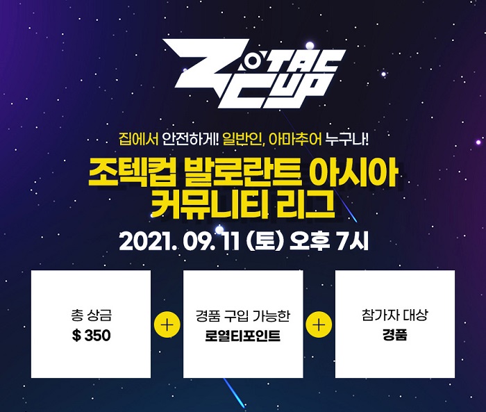 ... 토너먼트 진행 및 신청은 Battlefy에서 주관하며, 지원 자격은 만 15세 이상 일반인이면 누구나 지원 가능하다. 단, 경기 시작 최소 30분 전에는 Battlefy 로그인 및 체크인이 되어 있어야 하며, 조텍컵 공식 디스코드 채널을 통해 경기 안내를 받아야 한다.