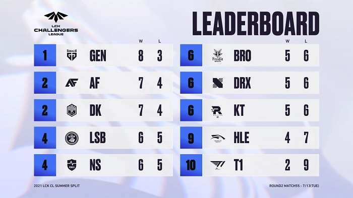 ... 특히 5, 6위에 각각 랭크되어 있는 리브 샌드박스와 아프리카 프릭스가 자신보다 순위가 높은 젠지, T1과 연전을 치르기 때문에 결과에 시선이 집중되고 있다. 1라운드 막판 연승을 통해 치고 올라왔던 한화생명e스포츠는 5주 차 담원 기아, 6주 차 젠지에게 패하면서 상승세