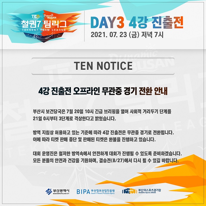 ... TEN 대회 운영진은 “철저한 방역 속에서 선수와 관계자들이 안전하게 대회를 치를 수 있도록 철저히 준비를 하겠다”며, “현장 관람은 취소되었지만 TEN 공식 방송 생중계와 함께 선수들의 개인 채널 및 코-스트리밍 통해 특별한 관점에서 방송을