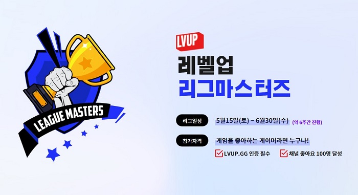... ‘100회의 좋아요’와 ‘16명 이상의 대회 참가자 수’를 달성한 채널이라면 참가 조건이 충족되어 자동으로 신청되는 방식이다. 레벨업 리그마스터즈는 ‘CHALLENGE’, ‘VOTE UP&rsquo