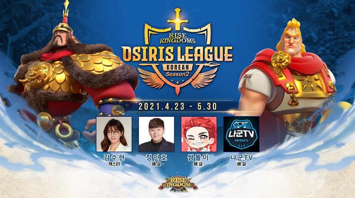 ... 특히 지난해 첫 개최에도 불구하고 성황리에 마무리된 만큼, 우승 연맹 2,000만원과 준우승 연맹 1,000만원, 3등 연맹 600만원 등 올해 총 상금 규모도 4,000만 원으로 크게 증가했다. 코리안 오시리스 리그는 4월 23일 오후 10시 32강 A조 경기를 시작으로