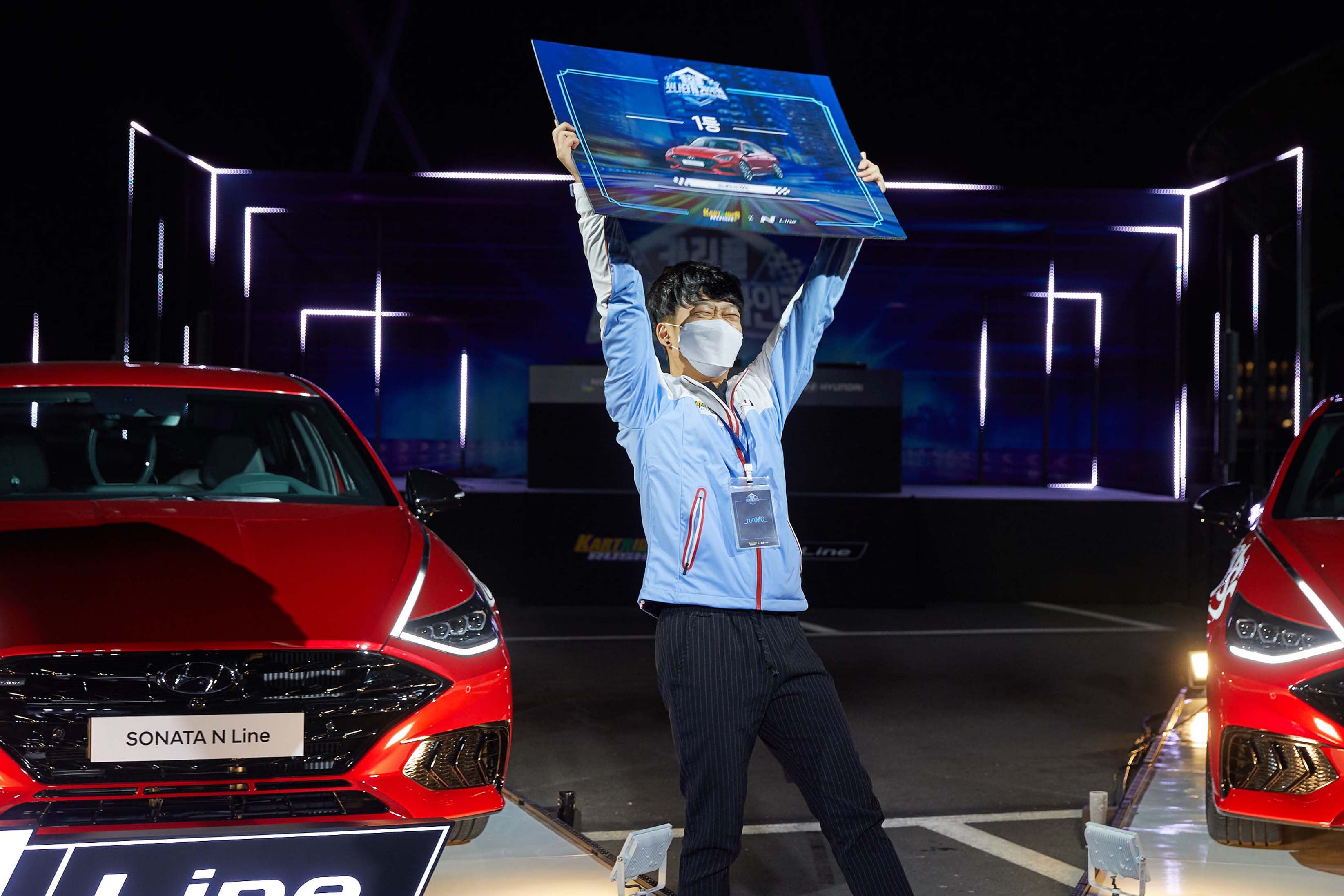 ... 이날 경기는 본선을 뚫고 올라온 일반부 8명 선수와 직장인부 2개 팀이 출전했다. 특히 현대자동차 대표세단 쏘나타의 N 라인 모델과 센슈어스 모델로 야외 무대가 꾸며져, 선수들이 각각 차량에 탑승해 게임을 플레이하는 이색 풍경이 펼쳐졌다. 모바일 레이싱 실력으로 잘