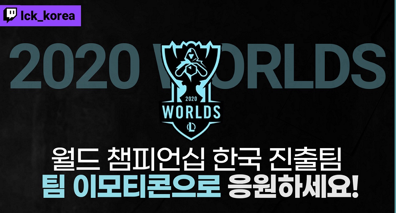 ...tv/lck_korea) 채널에서 실시간 중계된다. 리그오브레전드 2020 월드 챔피언십 기간 중 LCK_Korea 채널을 구독하면 한국 진출팀 DRX, 담원, 젠지(Gen. G) 로고와 LCK로고로 특별히 구성된 구독자 전용 이모티콘을 받을 수 있다