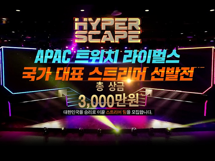 ... 또한 선발전에 참가하는 모든 팀에게는 각각 50만원의 상금이 지급되며 시청자 인기투표를 통해 4개 팀을 선정, 각각 100만원의 상금을 추가로 지급한다. APAC 트위치 라이벌스 국가대표 선발전은 3인 1팀 기준으로 트위치에서 하이퍼스케이프 게임 플레이 방송 시간 총합이
