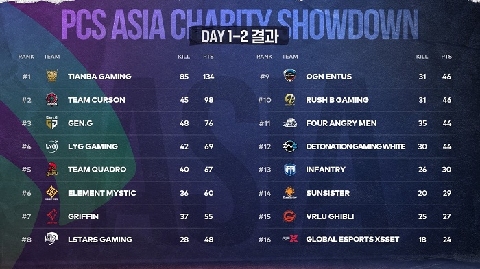 ... Team Curson은 45킬 98포인트로 그 뒤를 이었다. 한국 팀 중에는 Gen. G(젠지)가 48킬 76포인트로 매치 우승 없이 3위를 유지했다