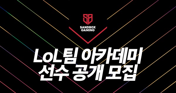 ... 선수 선발은 온·오프라인 테스트와 면접으로 진행될 예정이다. 샌드박스 게이밍 LoL 아카데미 선수로 발탁된 자는 ‘Panda’ 김기웅 감독, ‘DooTi’ 최두성 코치, ‘Hipo’ 석현준 코치의